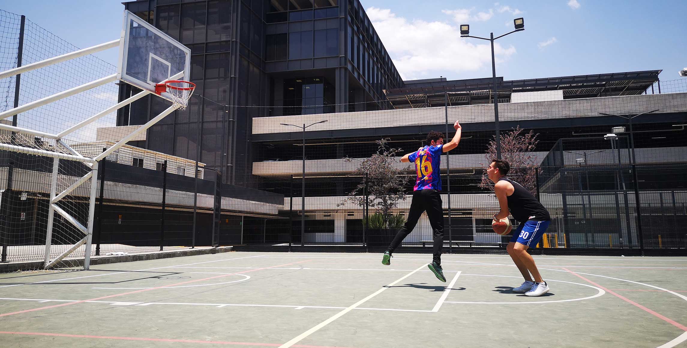 - Multi cancha (adaptable para practicar varias disciplinas: fútbol sala, baloncesto, voleibol y tenis).
