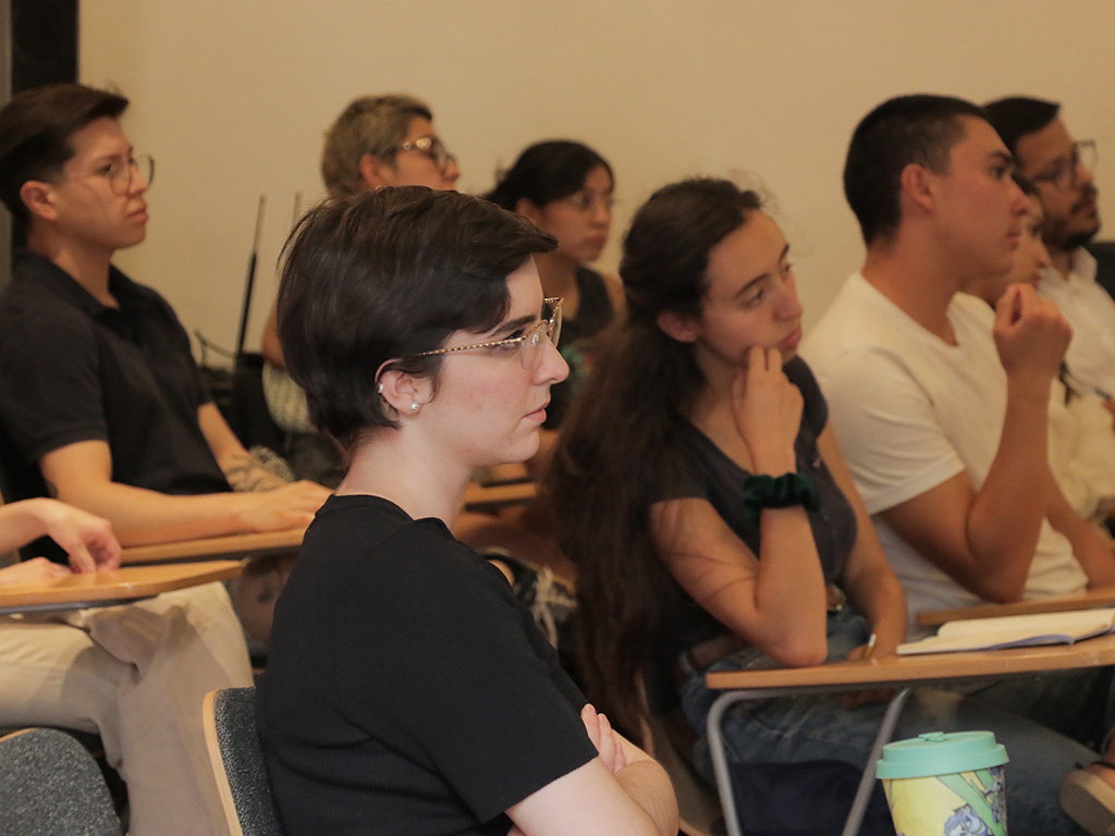 Tras la ponencia de Hubard, la Dra. Fernanda Crespo, filósofa, profesora, coordinadora académica de la Facultad de Filosofía en la Panamericana y cofundadora del grupo de estudios feministas del Instituto de Humanidades; explicó cómo el psicoanálisis la acercó al tema del cuerpo, para lo cual leyó un fragmento de un ensayo sobre Freud.