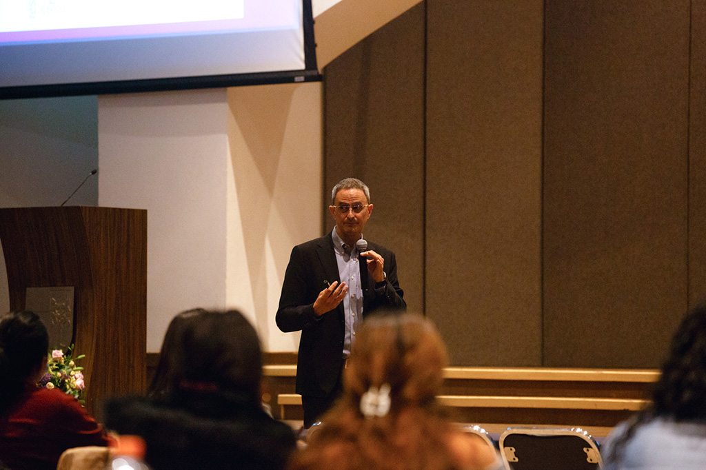 Durante su ponencia, habló sobre los diferentes tipos de tecnología que han surgido en la actualidad y cómo la humanidad avanza de una rápida manera en cuanto a este tema. Asimismo, recalcó cómo fue que el 30 de noviembre de 2022, la llegada de la Inteligencia Artificial (IA) marcó uno de los mayores avances tecnológicos del siglo, mismo que ha tenido gran impacto en la educación.