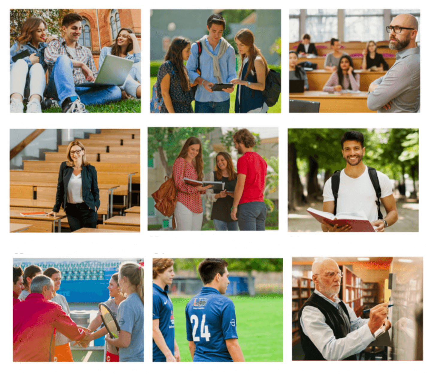 Esencia Humana: Imágenes de la comunidad universitaria, personas en diferentes planos y poses